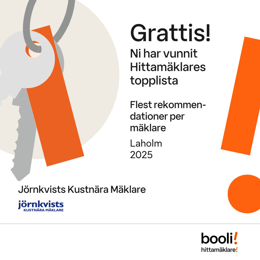 Statistik för publicerade bostäder, försäljningar och omdömen baseras på data från Booli och Hittamäklare. Statistiken för försäljningar avser inrapporterade och verifierade slutpriser från mäklare eller av Booli inhämtade och verifierade slutpriser. Statistiken för publicerade bostäder baseras på information som publicerats på Booli.se. Statistik för omdömen och rekommendationer baseras på omdömen från säljare som lämnats via Booli och Hittamäklare.