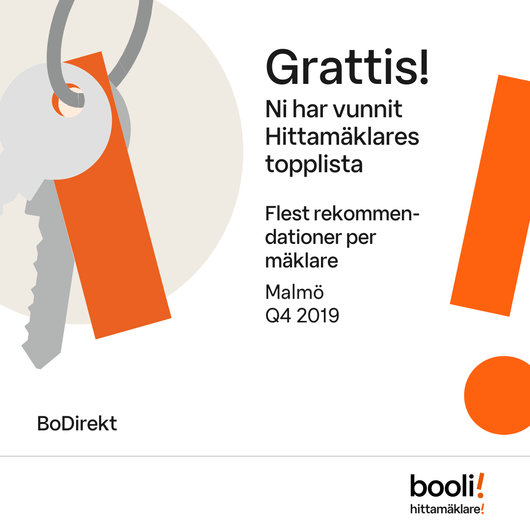 Statistik för publicerade bostäder, försäljningar och omdömen baseras på data från Booli och Hittamäklare. Statistiken för försäljningar avser inrapporterade och verifierade slutpriser från mäklare eller av Booli inhämtade och verifierade slutpriser. Statistiken för publicerade bostäder baseras på information som publicerats på Booli.se. Statistik för omdömen och rekommendationer baseras på omdömen från säljare som lämnats via Booli och Hittamäklare.