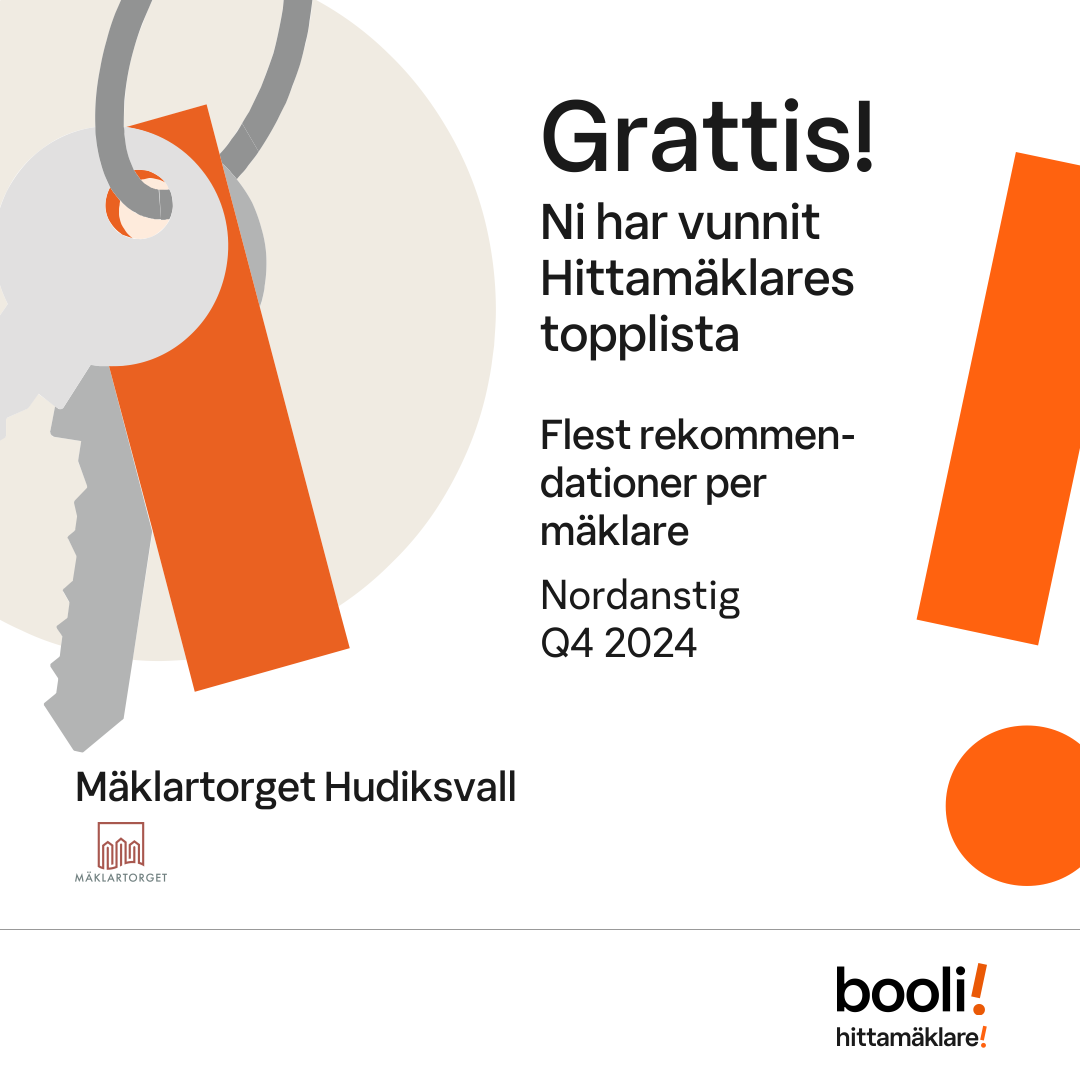 Statistik för publicerade bostäder, försäljningar och omdömen baseras på data från Booli och Hittamäklare. Statistiken för försäljningar avser inrapporterade och verifierade slutpriser från mäklare eller av Booli inhämtade och verifierade slutpriser. Statistiken för publicerade bostäder baseras på information som publicerats på Booli.se. Statistik för omdömen och rekommendationer baseras på omdömen från säljare som lämnats via Booli och Hittamäklare.