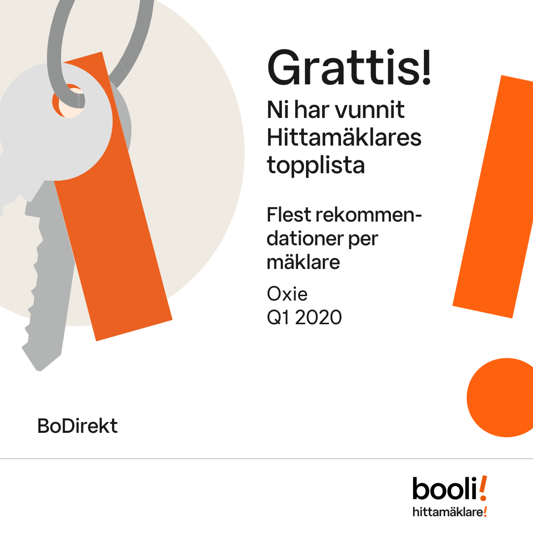 Statistik för publicerade bostäder, försäljningar och omdömen baseras på data från Booli och Hittamäklare. Statistiken för försäljningar avser inrapporterade och verifierade slutpriser från mäklare eller av Booli inhämtade och verifierade slutpriser. Statistiken för publicerade bostäder baseras på information som publicerats på Booli.se. Statistik för omdömen och rekommendationer baseras på omdömen från säljare som lämnats via Booli och Hittamäklare.