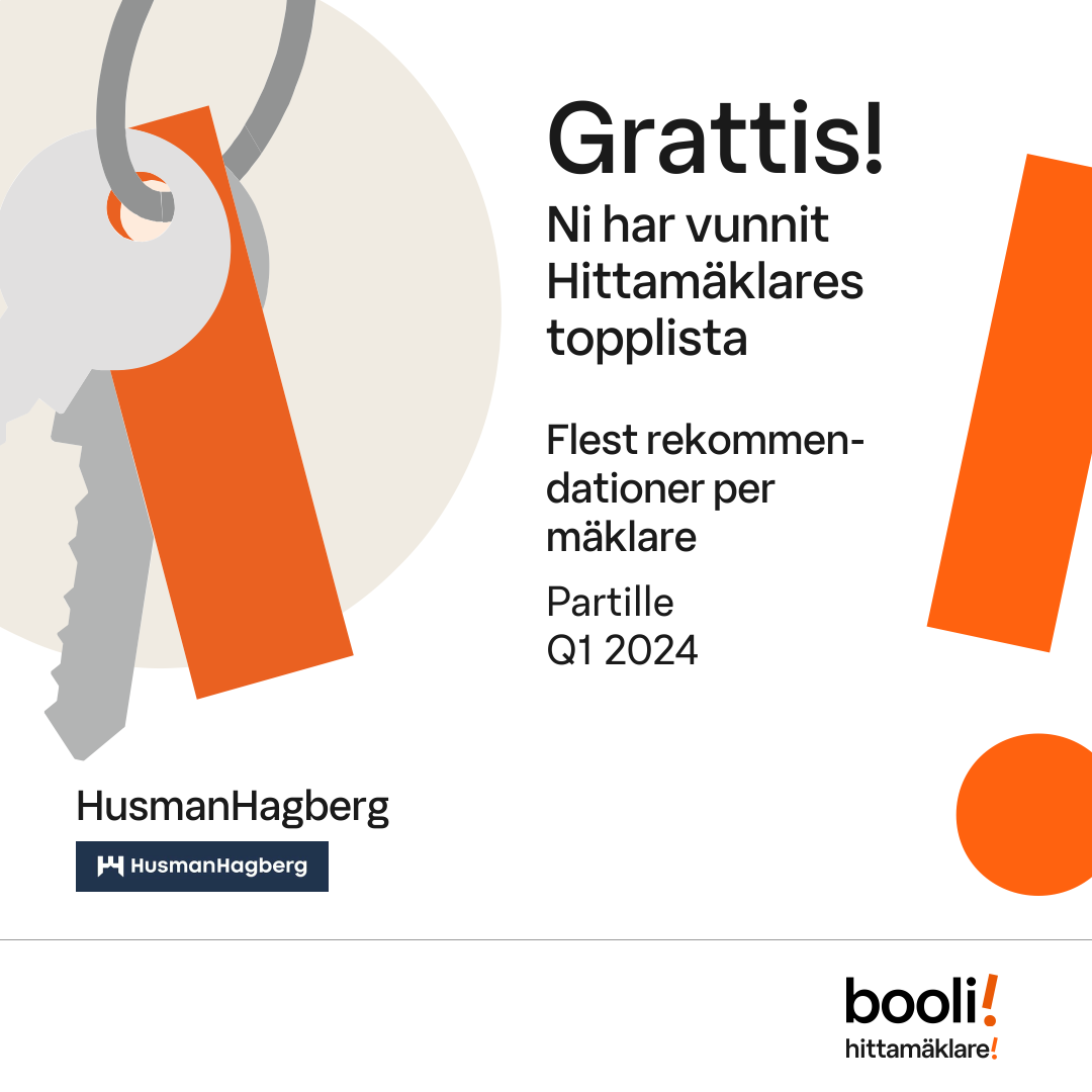 Statistik för publicerade bostäder, försäljningar och omdömen baseras på data från Booli och Hittamäklare. Statistiken för försäljningar avser inrapporterade och verifierade slutpriser från mäklare eller av Booli inhämtade och verifierade slutpriser. Statistiken för publicerade bostäder baseras på information som publicerats på Booli.se. Statistik för omdömen och rekommendationer baseras på omdömen från säljare som lämnats via Booli och Hittamäklare.