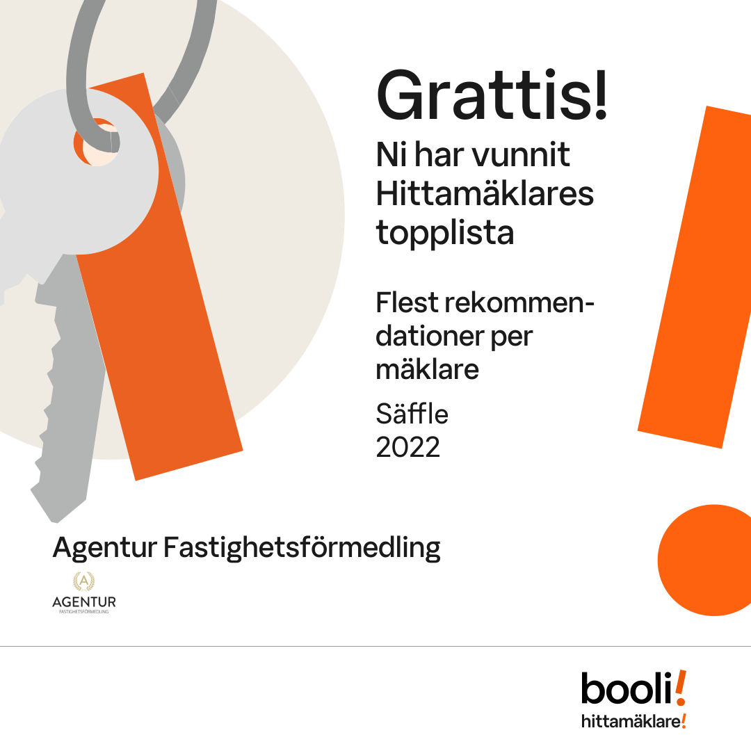 Statistik för publicerade bostäder, försäljningar och omdömen baseras på data från Booli och Hittamäklare. Statistiken för försäljningar avser inrapporterade och verifierade slutpriser från mäklare eller av Booli inhämtade och verifierade slutpriser. Statistiken för publicerade bostäder baseras på information som publicerats på Booli.se. Statistik för omdömen och rekommendationer baseras på omdömen från säljare som lämnats via Booli och Hittamäklare.