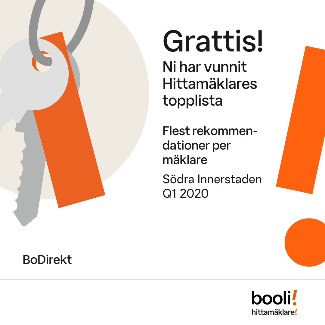 Statistik för publicerade bostäder, försäljningar och omdömen baseras på data från Booli och Hittamäklare. Statistiken för försäljningar avser inrapporterade och verifierade slutpriser från mäklare eller av Booli inhämtade och verifierade slutpriser. Statistiken för publicerade bostäder baseras på information som publicerats på Booli.se. Statistik för omdömen och rekommendationer baseras på omdömen från säljare som lämnats via Booli och Hittamäklare.