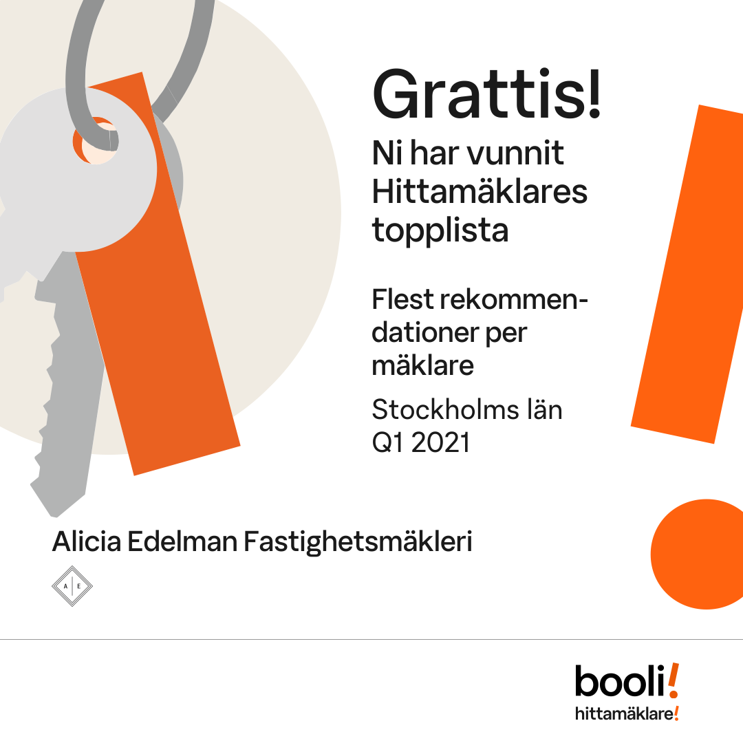 Statistik för publicerade bostäder, försäljningar och omdömen baseras på data från Booli och Hittamäklare. Statistiken för försäljningar avser inrapporterade och verifierade slutpriser från mäklare eller av Booli inhämtade och verifierade slutpriser. Statistiken för publicerade bostäder baseras på information som publicerats på Booli.se. Statistik för omdömen och rekommendationer baseras på omdömen från säljare som lämnats via Booli och Hittamäklare.