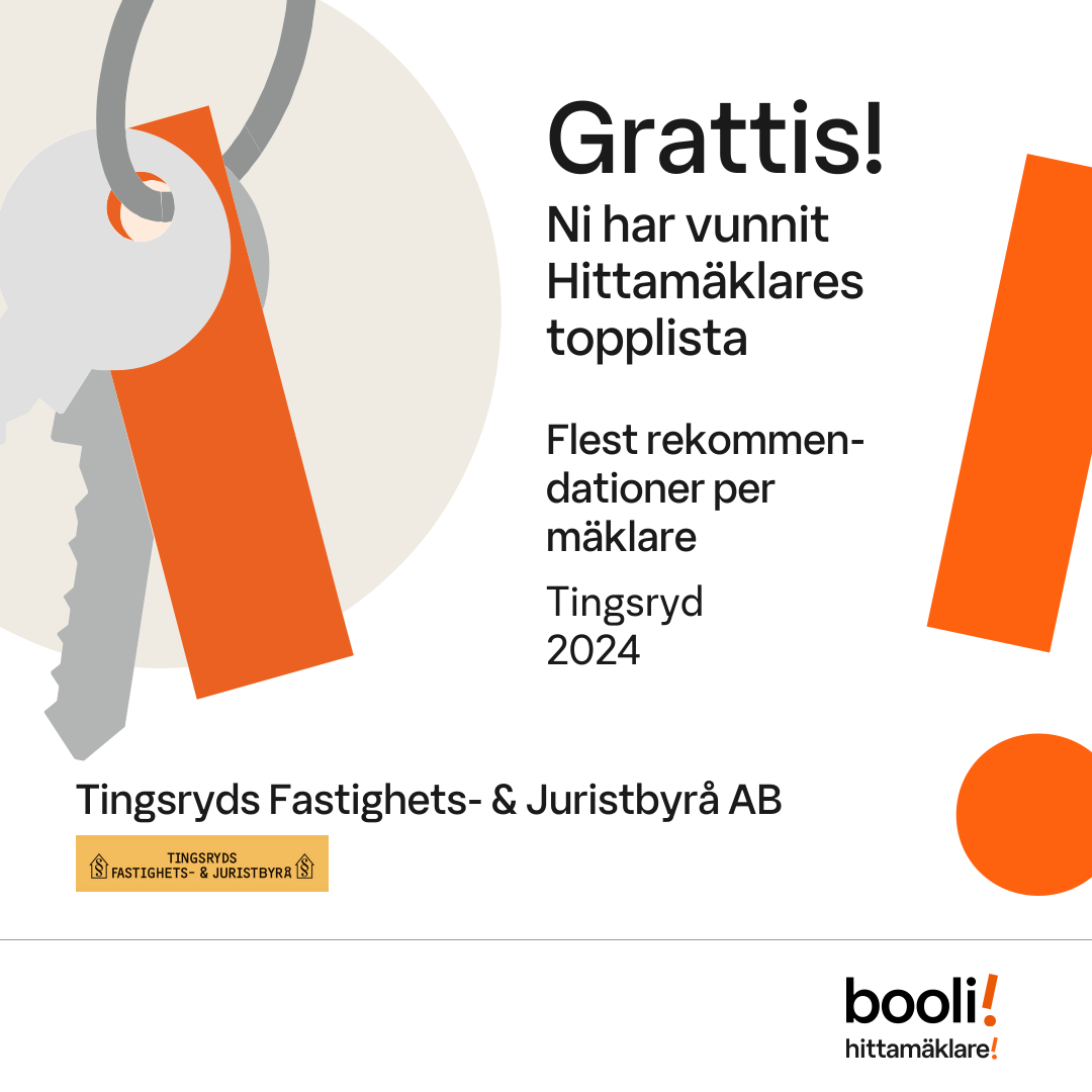 Statistik för publicerade bostäder, försäljningar och omdömen baseras på data från Booli och Hittamäklare. Statistiken för försäljningar avser inrapporterade och verifierade slutpriser från mäklare eller av Booli inhämtade och verifierade slutpriser. Statistiken för publicerade bostäder baseras på information som publicerats på Booli.se. Statistik för omdömen och rekommendationer baseras på omdömen från säljare som lämnats via Booli och Hittamäklare.