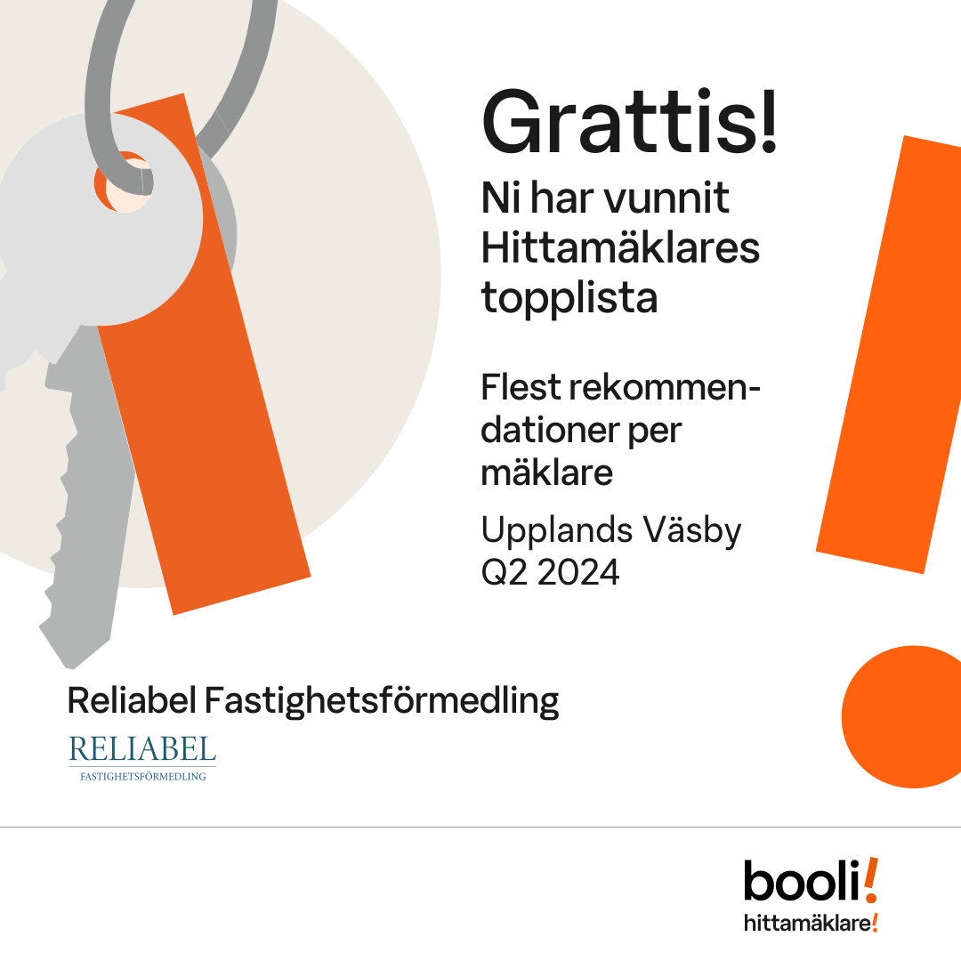 Statistik för publicerade bostäder, försäljningar och omdömen baseras på data från Booli och Hittamäklare. Statistiken för försäljningar avser inrapporterade och verifierade slutpriser från mäklare eller av Booli inhämtade och verifierade slutpriser. Statistiken för publicerade bostäder baseras på information som publicerats på Booli.se. Statistik för omdömen och rekommendationer baseras på omdömen från säljare som lämnats via Booli och Hittamäklare.