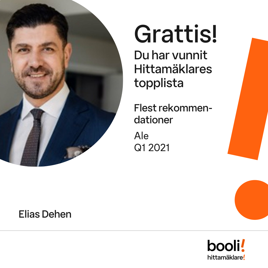 Statistik för publicerade bostäder, försäljningar och omdömen baseras på data från Booli och Hittamäklare. Statistiken för försäljningar avser inrapporterade och verifierade slutpriser från mäklare eller av Booli inhämtade och verifierade slutpriser. Statistiken för publicerade bostäder baseras på information som publicerats på Booli.se. Statistik för omdömen och rekommendationer baseras på omdömen från säljare som lämnats via Booli och Hittamäklare.