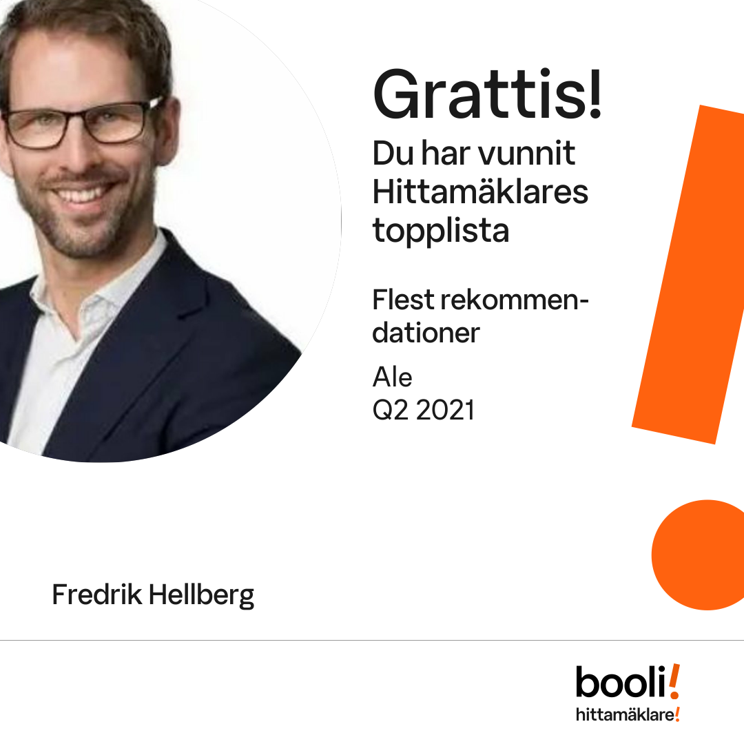 Statistik för publicerade bostäder, försäljningar och omdömen baseras på data från Booli och Hittamäklare. Statistiken för försäljningar avser inrapporterade och verifierade slutpriser från mäklare eller av Booli inhämtade och verifierade slutpriser. Statistiken för publicerade bostäder baseras på information som publicerats på Booli.se. Statistik för omdömen och rekommendationer baseras på omdömen från säljare som lämnats via Booli och Hittamäklare.