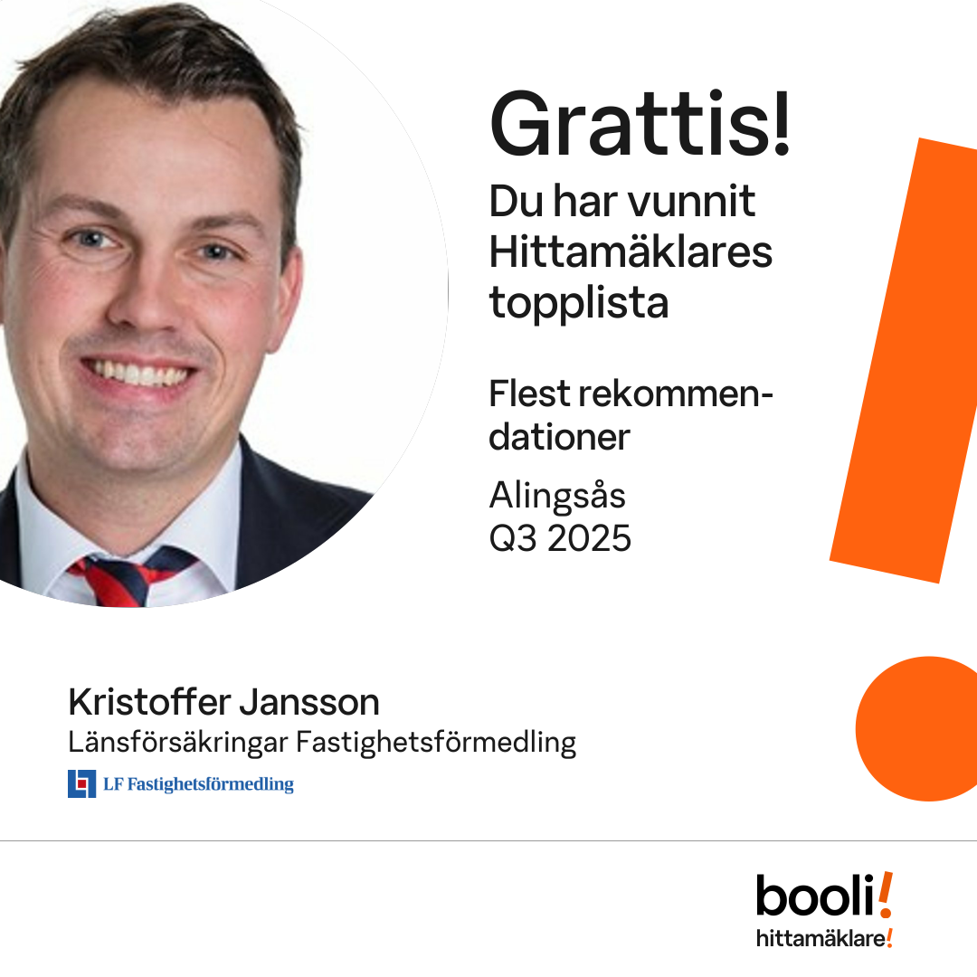 Mäklarna med flest rekommendationer i Alingsås tredje kvartalet 2025 enligt vår statistik. Publicerad 2025-10-07.