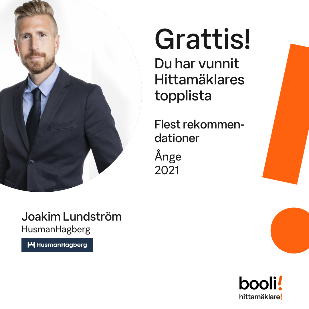 Statistik för publicerade bostäder, försäljningar och omdömen baseras på data från Booli och Hittamäklare. Statistiken för försäljningar avser inrapporterade och verifierade slutpriser från mäklare eller av Booli inhämtade och verifierade slutpriser. Statistiken för publicerade bostäder baseras på information som publicerats på Booli.se. Statistik för omdömen och rekommendationer baseras på omdömen från säljare som lämnats via Booli och Hittamäklare.