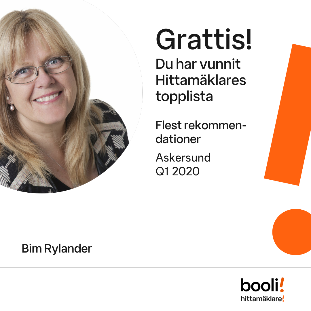 Statistik för publicerade bostäder, försäljningar och omdömen baseras på data från Booli och Hittamäklare. Statistiken för försäljningar avser inrapporterade och verifierade slutpriser från mäklare eller av Booli inhämtade och verifierade slutpriser. Statistiken för publicerade bostäder baseras på information som publicerats på Booli.se. Statistik för omdömen och rekommendationer baseras på omdömen från säljare som lämnats via Booli och Hittamäklare.