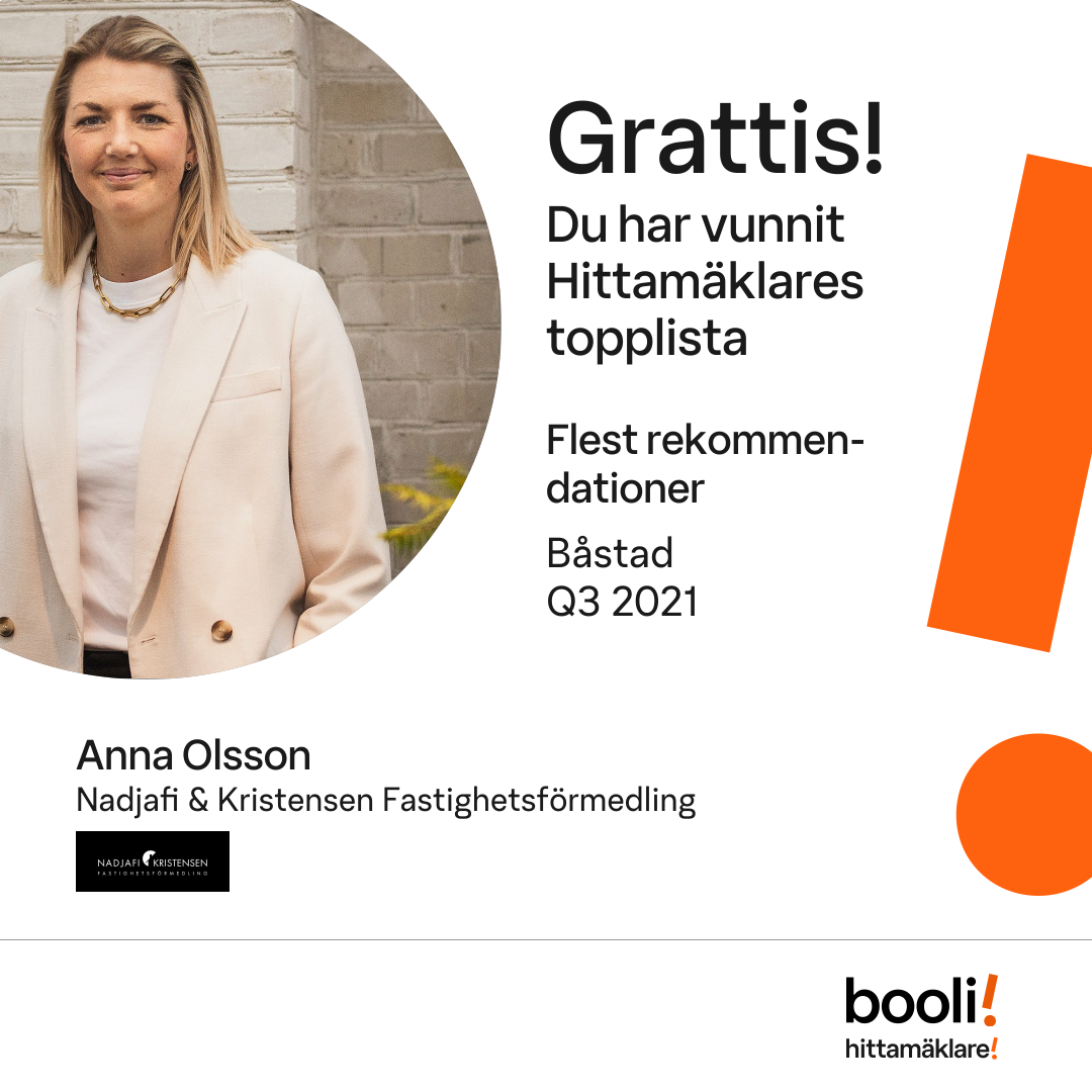 Statistik för publicerade bostäder, försäljningar och omdömen baseras på data från Booli och Hittamäklare. Statistiken för försäljningar avser inrapporterade och verifierade slutpriser från mäklare eller av Booli inhämtade och verifierade slutpriser. Statistiken för publicerade bostäder baseras på information som publicerats på Booli.se. Statistik för omdömen och rekommendationer baseras på omdömen från säljare som lämnats via Booli och Hittamäklare.