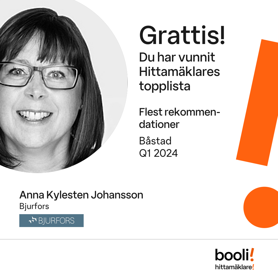 Statistik för publicerade bostäder, försäljningar och omdömen baseras på data från Booli och Hittamäklare. Statistiken för försäljningar avser inrapporterade och verifierade slutpriser från mäklare eller av Booli inhämtade och verifierade slutpriser. Statistiken för publicerade bostäder baseras på information som publicerats på Booli.se. Statistik för omdömen och rekommendationer baseras på omdömen från säljare som lämnats via Booli och Hittamäklare.