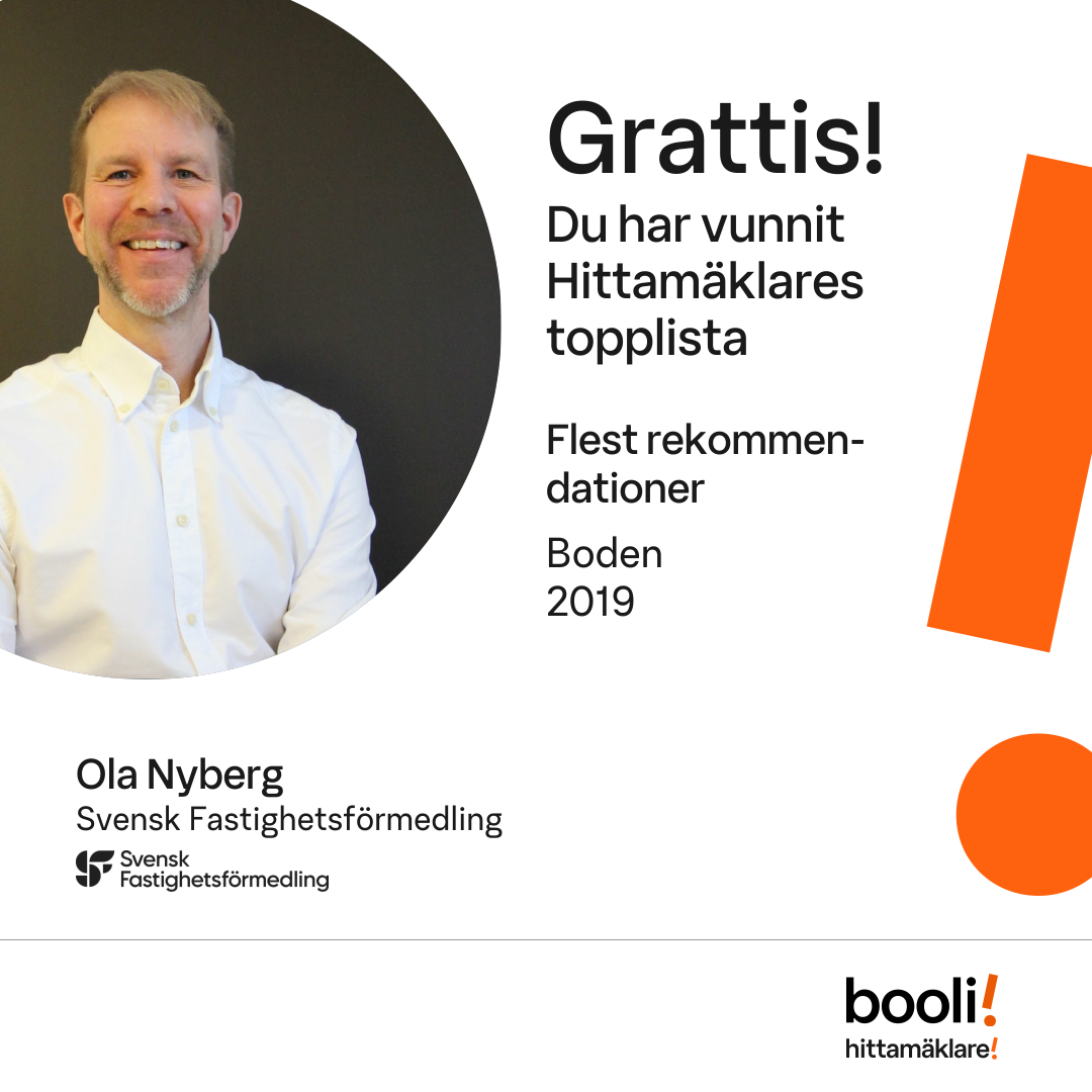Mäklarna med flest rekommendationer i Boden helår 2019 enligt vår statistik. Publicerad 2020-01-15.