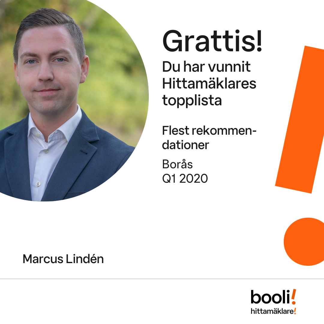 Statistik för publicerade bostäder, försäljningar och omdömen baseras på data från Booli och Hittamäklare. Statistiken för försäljningar avser inrapporterade och verifierade slutpriser från mäklare eller av Booli inhämtade och verifierade slutpriser. Statistiken för publicerade bostäder baseras på information som publicerats på Booli.se. Statistik för omdömen och rekommendationer baseras på omdömen från säljare som lämnats via Booli och Hittamäklare.