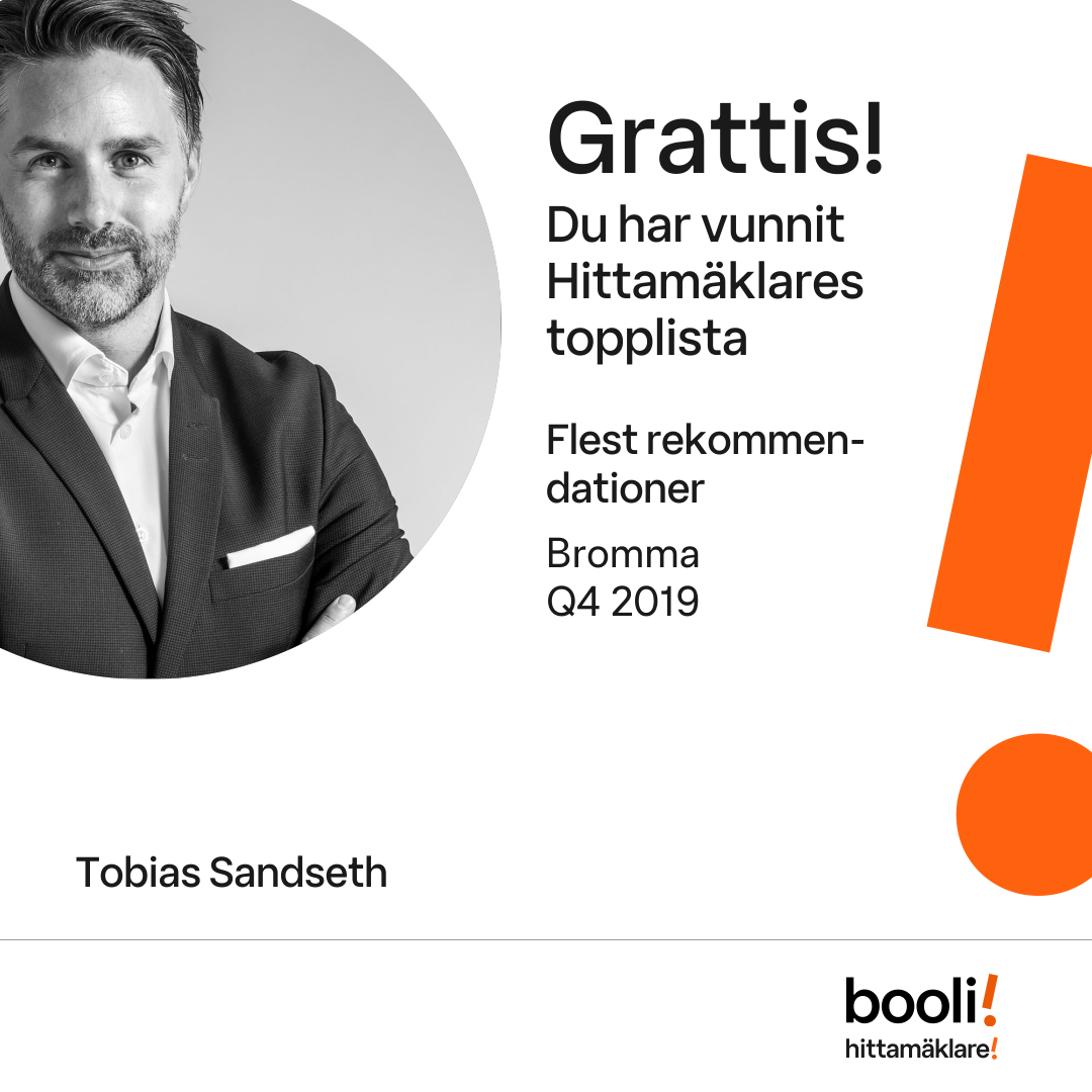 Statistik för publicerade bostäder, försäljningar och omdömen baseras på data från Booli och Hittamäklare. Statistiken för försäljningar avser inrapporterade och verifierade slutpriser från mäklare eller av Booli inhämtade och verifierade slutpriser. Statistiken för publicerade bostäder baseras på information som publicerats på Booli.se. Statistik för omdömen och rekommendationer baseras på omdömen från säljare som lämnats via Booli och Hittamäklare.
