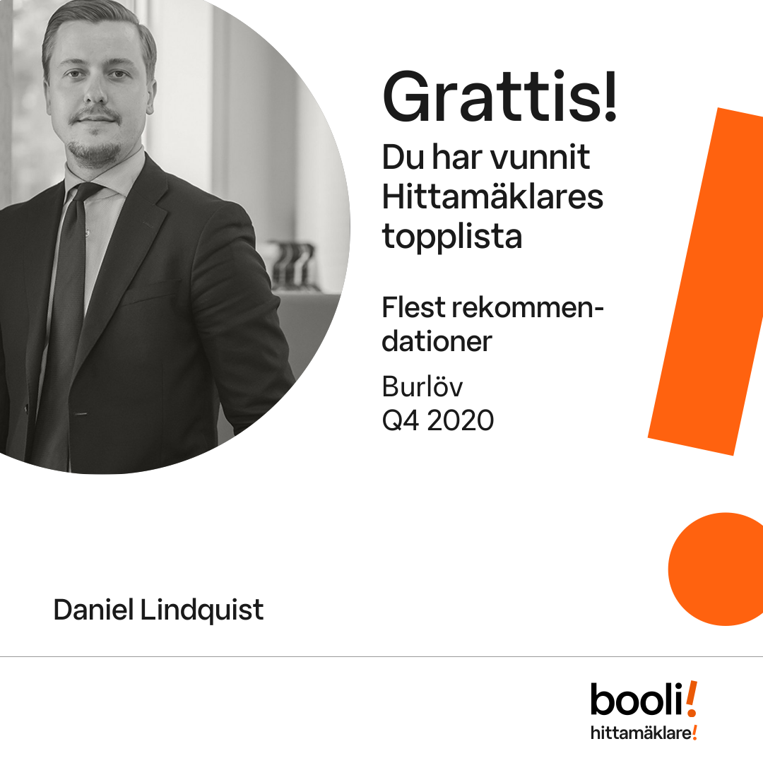 Statistik för publicerade bostäder, försäljningar och omdömen baseras på data från Booli. Statistiken för försäljningar avser inrapporterade och verifierade slutpriser från mäklare eller av Booli inhämtade och verifierade slutpriser. Statistiken för publicerade bostäder baseras på information som publicerats på Booli.se. Statistik för omdömen och rekommendationer baseras på omdömen från säljare som lämnats via Booli.