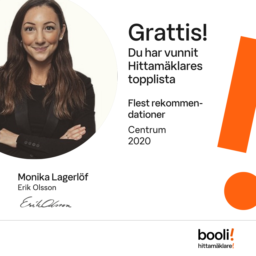 Statistik för publicerade bostäder, försäljningar och omdömen baseras på data från Booli och Hittamäklare. Statistiken för försäljningar avser inrapporterade och verifierade slutpriser från mäklare eller av Booli inhämtade och verifierade slutpriser. Statistiken för publicerade bostäder baseras på information som publicerats på Booli.se. Statistik för omdömen och rekommendationer baseras på omdömen från säljare som lämnats via Booli och Hittamäklare.