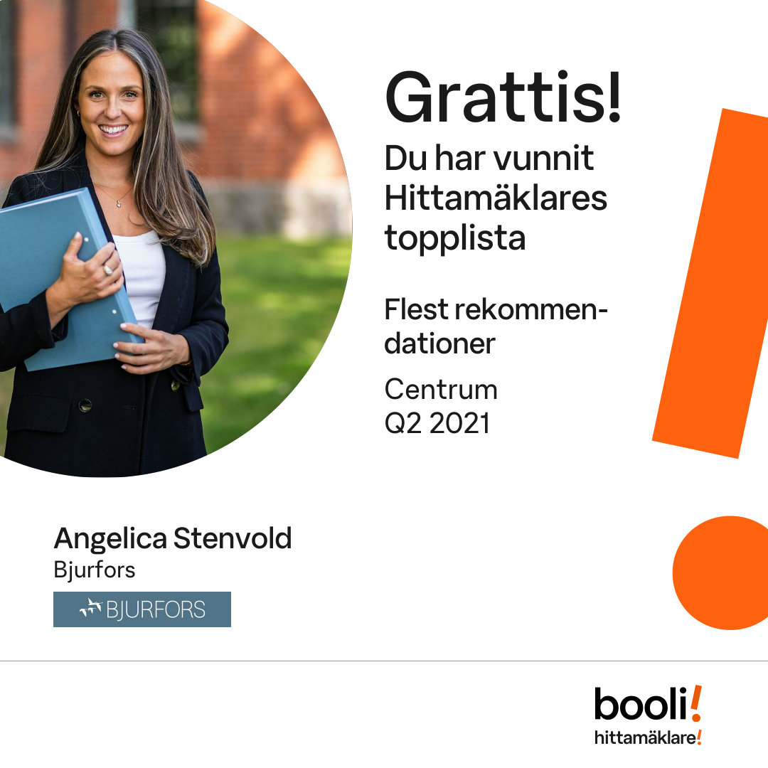 Statistik för publicerade bostäder, försäljningar och omdömen baseras på data från Booli och Hittamäklare. Statistiken för försäljningar avser inrapporterade och verifierade slutpriser från mäklare eller av Booli inhämtade och verifierade slutpriser. Statistiken för publicerade bostäder baseras på information som publicerats på Booli.se. Statistik för omdömen och rekommendationer baseras på omdömen från säljare som lämnats via Booli och Hittamäklare.