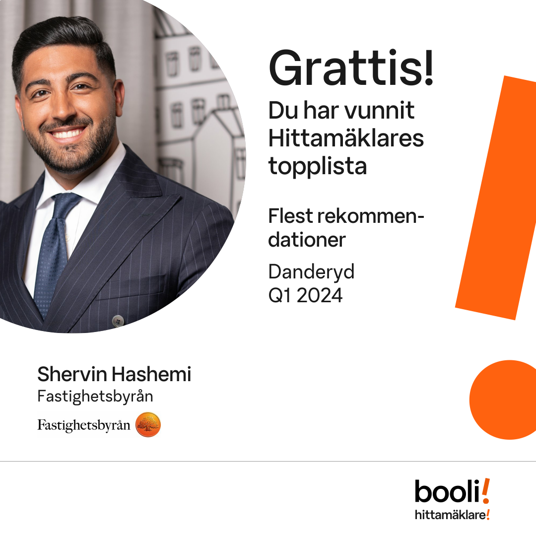 Statistik för publicerade bostäder, försäljningar och omdömen baseras på data från Booli och Hittamäklare. Statistiken för försäljningar avser inrapporterade och verifierade slutpriser från mäklare eller av Booli inhämtade och verifierade slutpriser. Statistiken för publicerade bostäder baseras på information som publicerats på Booli.se. Statistik för omdömen och rekommendationer baseras på omdömen från säljare som lämnats via Booli och Hittamäklare.