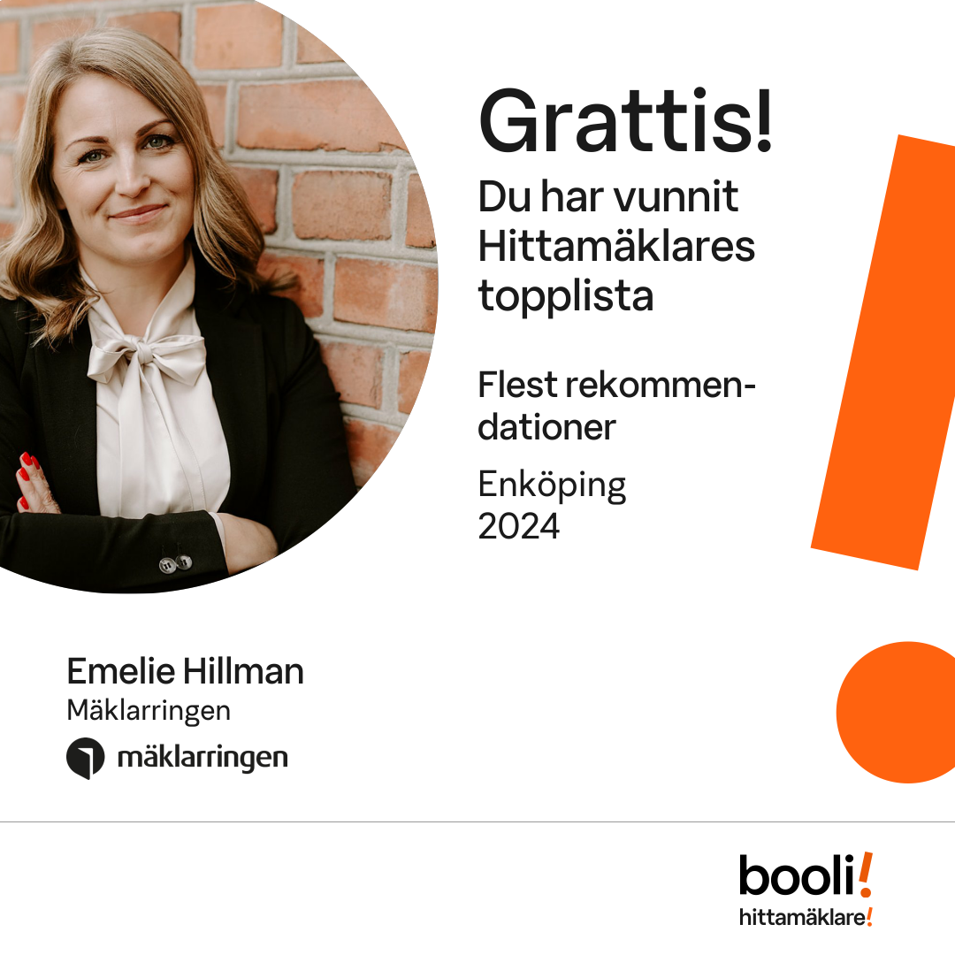 Statistik för publicerade bostäder, försäljningar och omdömen baseras på data från Booli och Hittamäklare. Statistiken för försäljningar avser inrapporterade och verifierade slutpriser från mäklare eller av Booli inhämtade och verifierade slutpriser. Statistiken för publicerade bostäder baseras på information som publicerats på Booli.se. Statistik för omdömen och rekommendationer baseras på omdömen från säljare som lämnats via Booli och Hittamäklare.