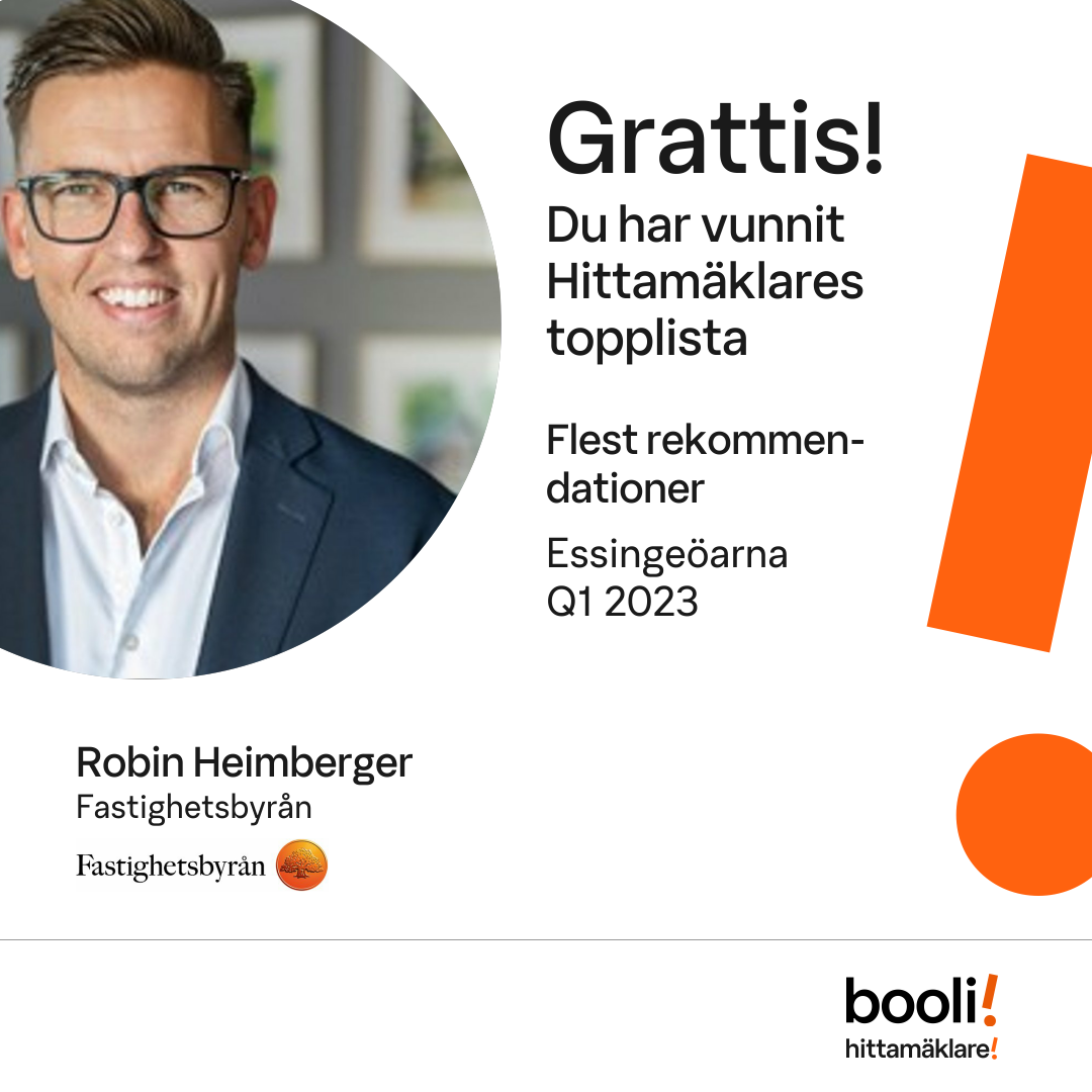 Statistik för publicerade bostäder, försäljningar och omdömen baseras på data från Booli och Hittamäklare. Statistiken för försäljningar avser inrapporterade och verifierade slutpriser från mäklare eller av Booli inhämtade och verifierade slutpriser. Statistiken för publicerade bostäder baseras på information som publicerats på Booli.se. Statistik för omdömen och rekommendationer baseras på omdömen från säljare som lämnats via Booli och Hittamäklare.
