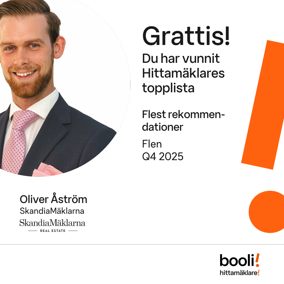 Statistik för publicerade bostäder, försäljningar och omdömen baseras på data från Booli och Hittamäklare. Statistiken för försäljningar avser inrapporterade och verifierade slutpriser från mäklare eller av Booli inhämtade och verifierade slutpriser. Statistiken för publicerade bostäder baseras på information som publicerats på Booli.se. Statistik för omdömen och rekommendationer baseras på omdömen från säljare som lämnats via Booli och Hittamäklare.