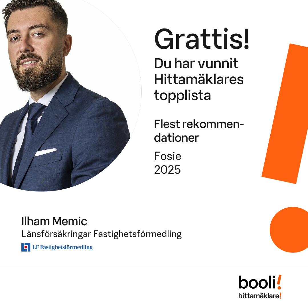 Statistik för publicerade bostäder, försäljningar och omdömen baseras på data från Booli och Hittamäklare. Statistiken för försäljningar avser inrapporterade och verifierade slutpriser från mäklare eller av Booli inhämtade och verifierade slutpriser. Statistiken för publicerade bostäder baseras på information som publicerats på Booli.se. Statistik för omdömen och rekommendationer baseras på omdömen från säljare som lämnats via Booli och Hittamäklare.