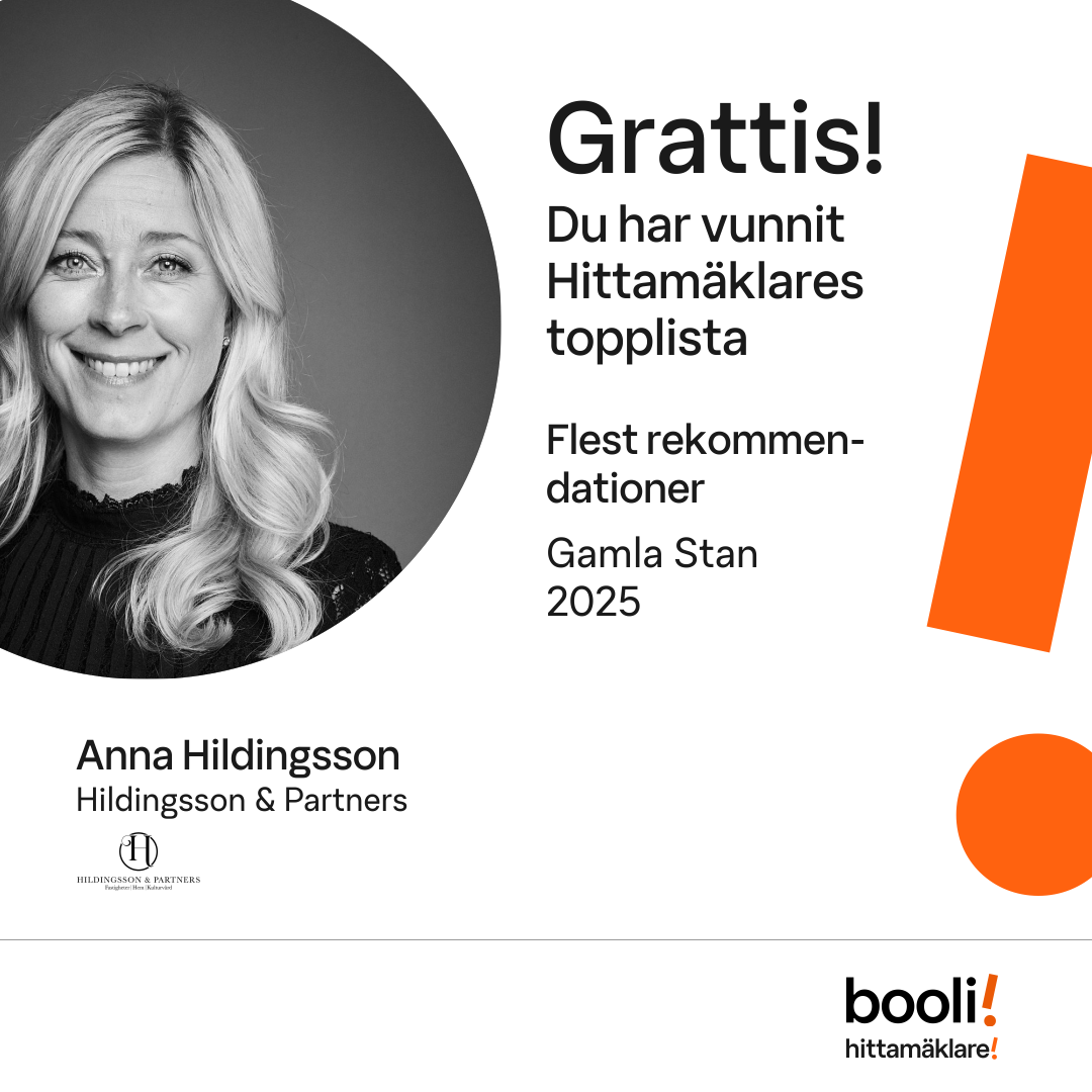Statistik för publicerade bostäder, försäljningar och omdömen baseras på data från Booli och Hittamäklare. Statistiken för försäljningar avser inrapporterade och verifierade slutpriser från mäklare eller av Booli inhämtade och verifierade slutpriser. Statistiken för publicerade bostäder baseras på information som publicerats på Booli.se. Statistik för omdömen och rekommendationer baseras på omdömen från säljare som lämnats via Booli och Hittamäklare.