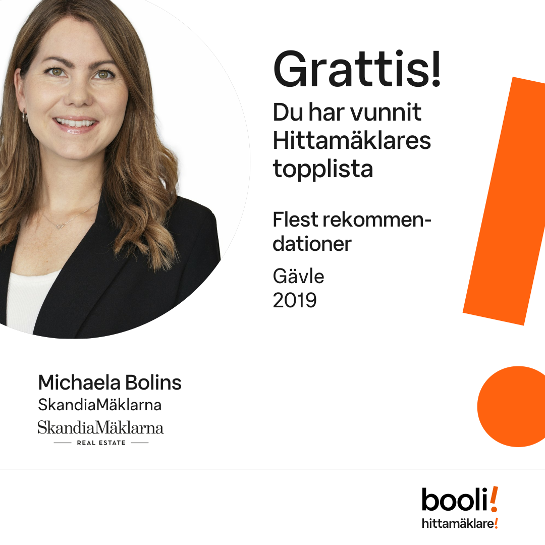 Statistik för publicerade bostäder, försäljningar och omdömen baseras på data från Booli och Hittamäklare. Statistiken för försäljningar avser inrapporterade och verifierade slutpriser från mäklare eller av Booli inhämtade och verifierade slutpriser. Statistiken för publicerade bostäder baseras på information som publicerats på Booli.se. Statistik för omdömen och rekommendationer baseras på omdömen från säljare som lämnats via Booli och Hittamäklare.