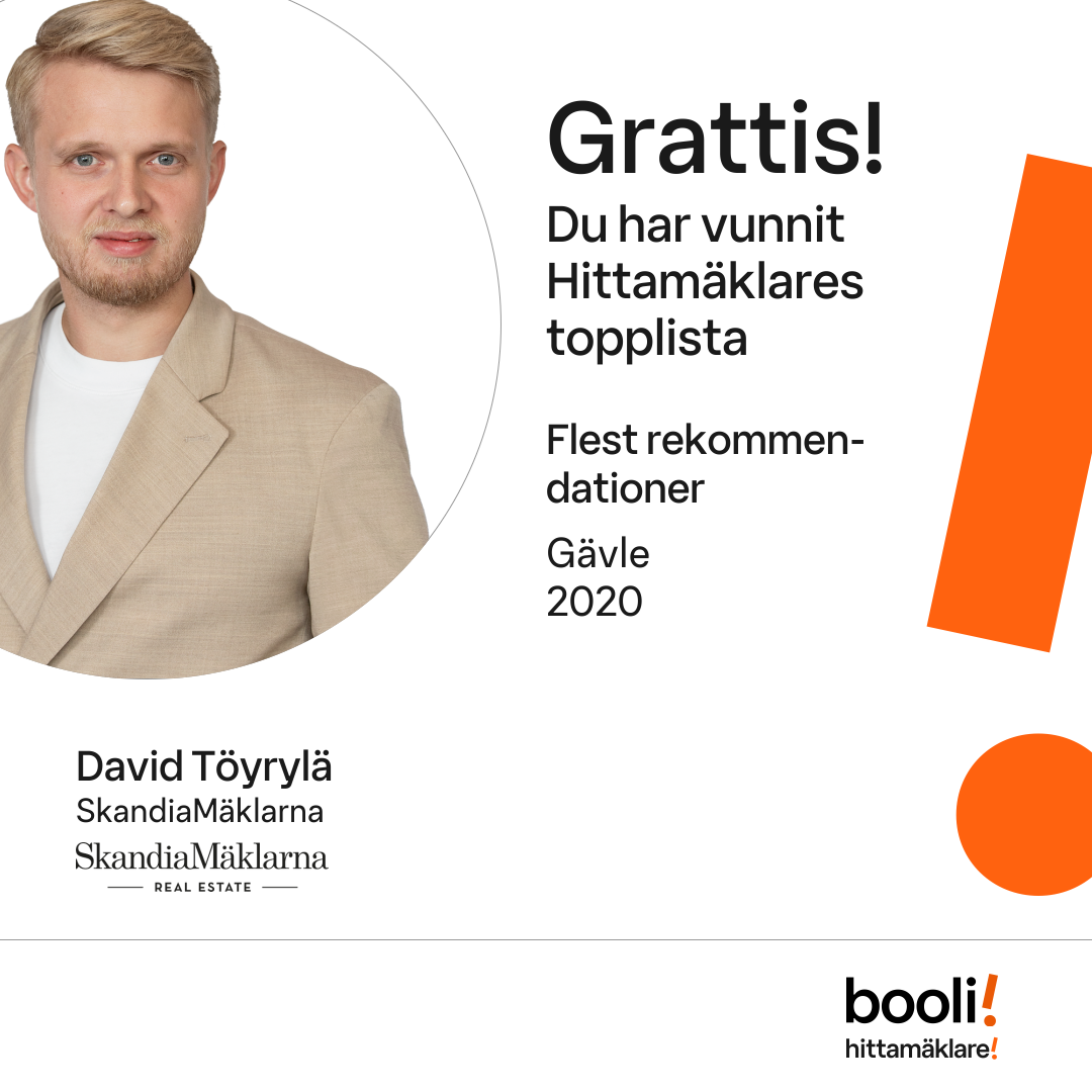 Statistik för publicerade bostäder, försäljningar och omdömen baseras på data från Booli och Hittamäklare. Statistiken för försäljningar avser inrapporterade och verifierade slutpriser från mäklare eller av Booli inhämtade och verifierade slutpriser. Statistiken för publicerade bostäder baseras på information som publicerats på Booli.se. Statistik för omdömen och rekommendationer baseras på omdömen från säljare som lämnats via Booli och Hittamäklare.