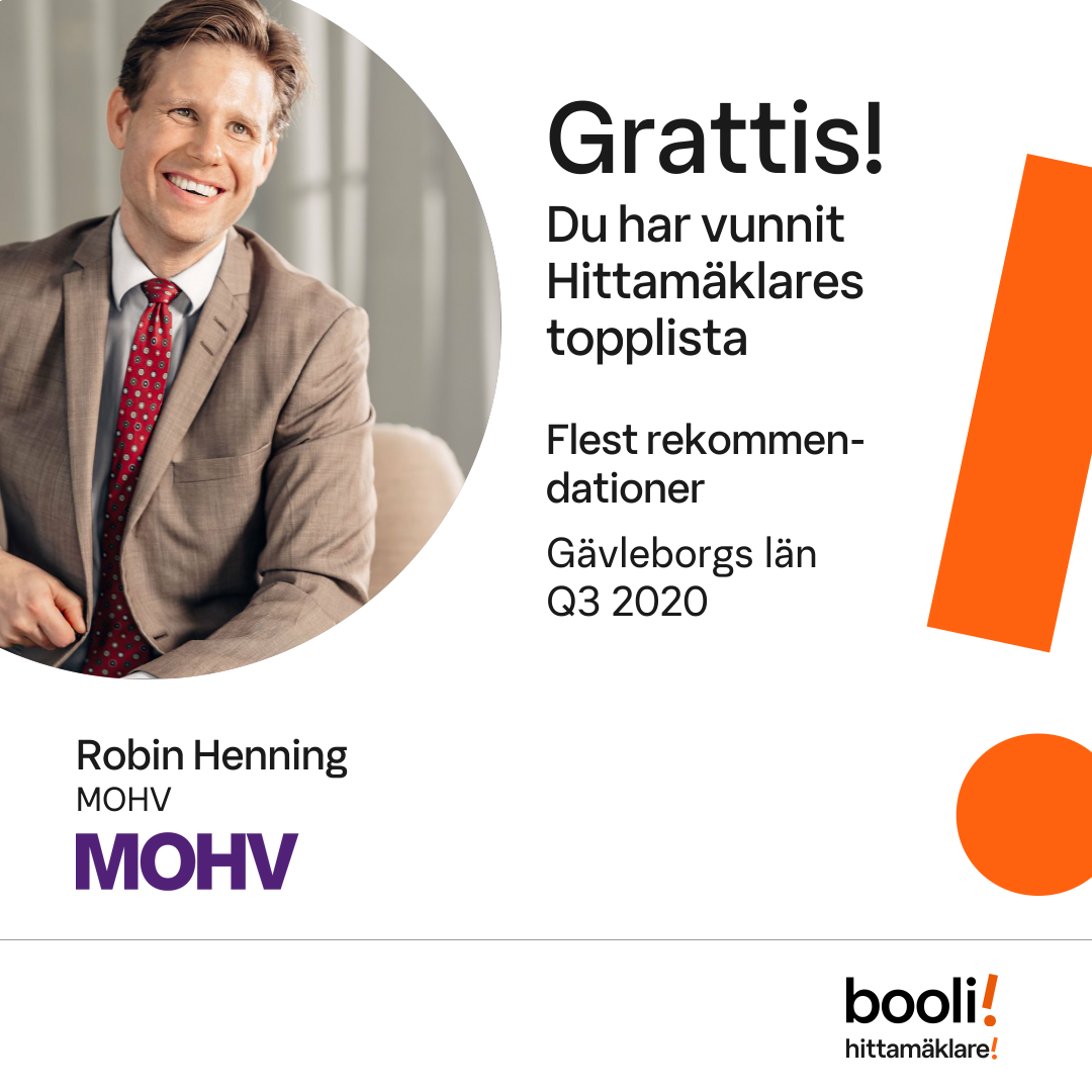 Statistik för publicerade bostäder, försäljningar och omdömen baseras på data från Booli och Hittamäklare. Statistiken för försäljningar avser inrapporterade och verifierade slutpriser från mäklare eller av Booli inhämtade och verifierade slutpriser. Statistiken för publicerade bostäder baseras på information som publicerats på Booli.se. Statistik för omdömen och rekommendationer baseras på omdömen från säljare som lämnats via Booli och Hittamäklare.