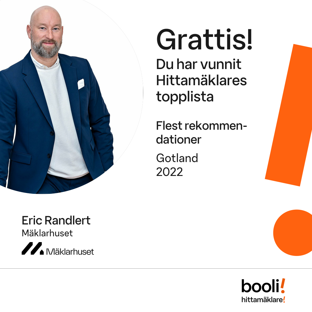 Statistik för publicerade bostäder, försäljningar och omdömen baseras på data från Booli och Hittamäklare. Statistiken för försäljningar avser inrapporterade och verifierade slutpriser från mäklare eller av Booli inhämtade och verifierade slutpriser. Statistiken för publicerade bostäder baseras på information som publicerats på Booli.se. Statistik för omdömen och rekommendationer baseras på omdömen från säljare som lämnats via Booli och Hittamäklare.