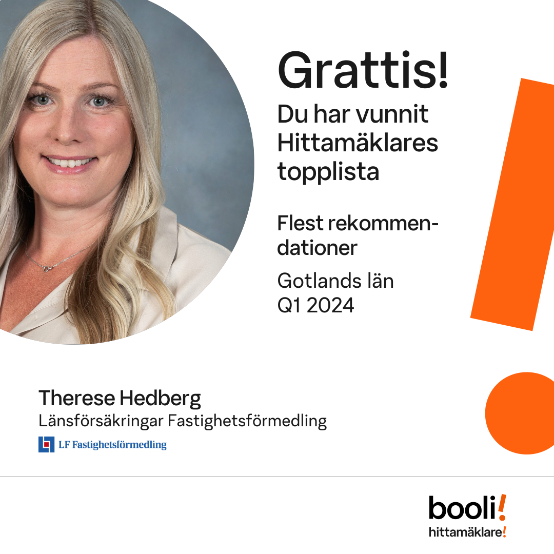 Statistik för publicerade bostäder, försäljningar och omdömen baseras på data från Booli och Hittamäklare. Statistiken för försäljningar avser inrapporterade och verifierade slutpriser från mäklare eller av Booli inhämtade och verifierade slutpriser. Statistiken för publicerade bostäder baseras på information som publicerats på Booli.se. Statistik för omdömen och rekommendationer baseras på omdömen från säljare som lämnats via Booli och Hittamäklare.