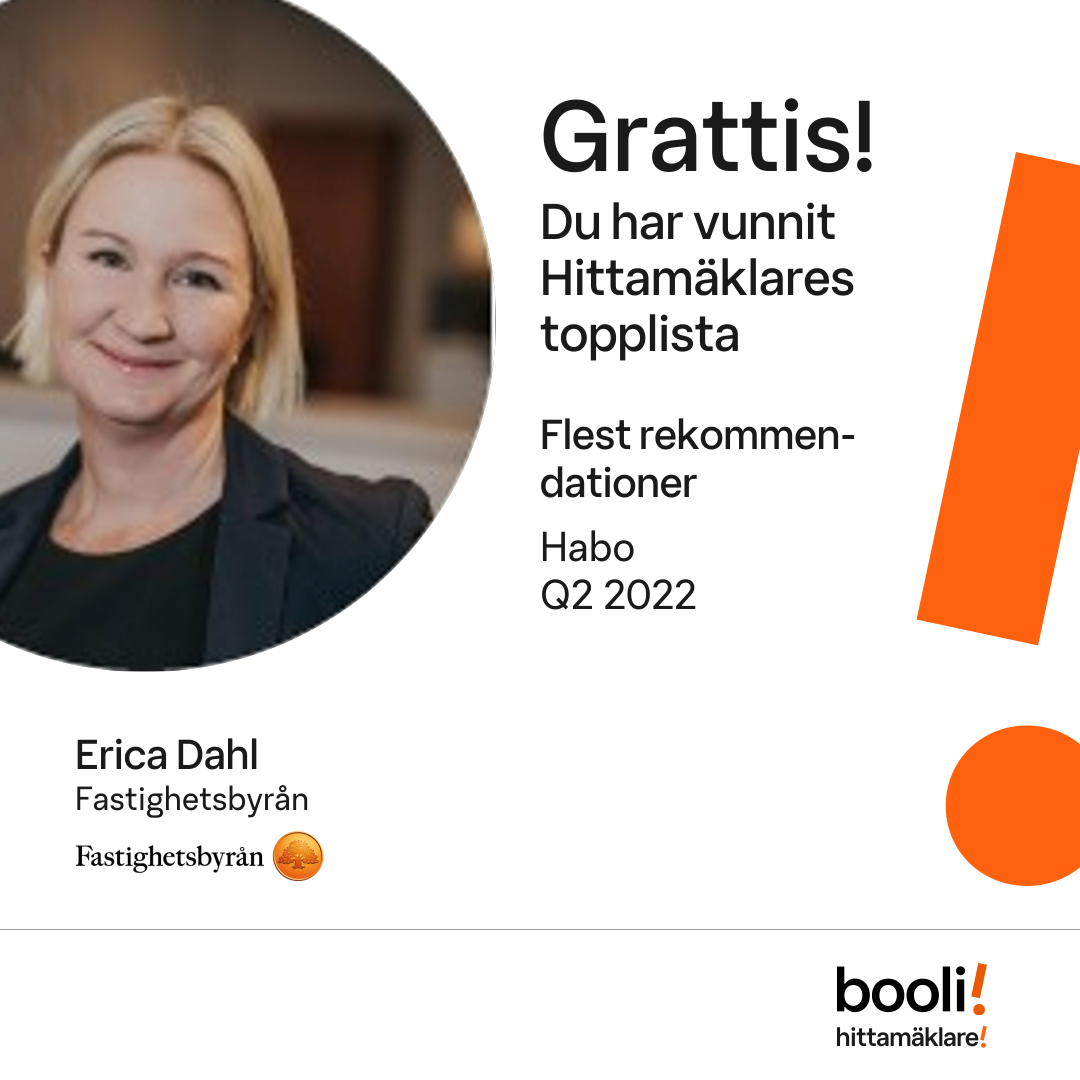 Statistik för publicerade bostäder, försäljningar och omdömen baseras på data från Booli och Hittamäklare. Statistiken för försäljningar avser inrapporterade och verifierade slutpriser från mäklare eller av Booli inhämtade och verifierade slutpriser. Statistiken för publicerade bostäder baseras på information som publicerats på Booli.se. Statistik för omdömen och rekommendationer baseras på omdömen från säljare som lämnats via Booli och Hittamäklare.