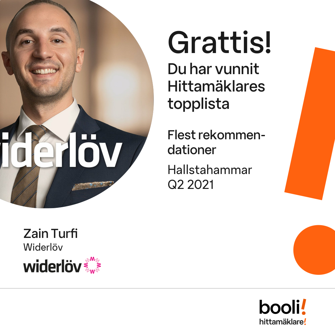 Statistik för publicerade bostäder, försäljningar och omdömen baseras på data från Booli och Hittamäklare. Statistiken för försäljningar avser inrapporterade och verifierade slutpriser från mäklare eller av Booli inhämtade och verifierade slutpriser. Statistiken för publicerade bostäder baseras på information som publicerats på Booli.se. Statistik för omdömen och rekommendationer baseras på omdömen från säljare som lämnats via Booli och Hittamäklare.