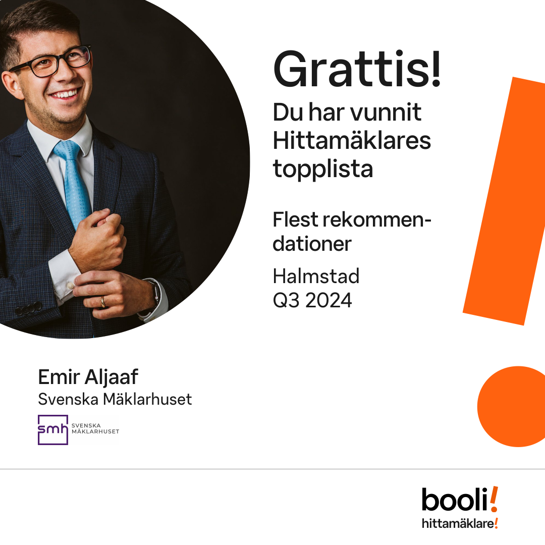 Statistik för publicerade bostäder, försäljningar och omdömen baseras på data från Booli och Hittamäklare. Statistiken för försäljningar avser inrapporterade och verifierade slutpriser från mäklare eller av Booli inhämtade och verifierade slutpriser. Statistiken för publicerade bostäder baseras på information som publicerats på Booli.se. Statistik för omdömen och rekommendationer baseras på omdömen från säljare som lämnats via Booli och Hittamäklare.