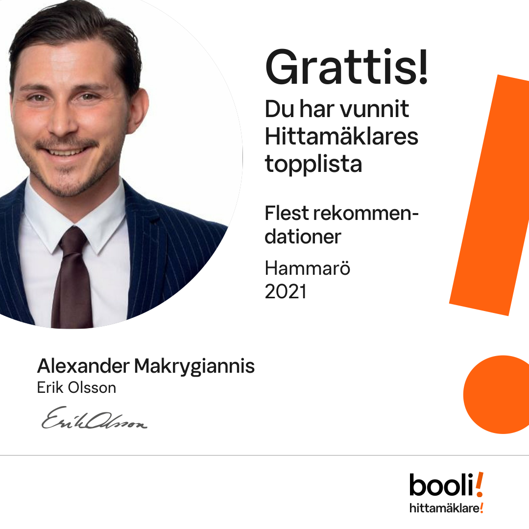 Mäklarna med flest rekommendationer på Hammarö helår 2021 enligt vår statistik. Publicerad 2022-01-13.