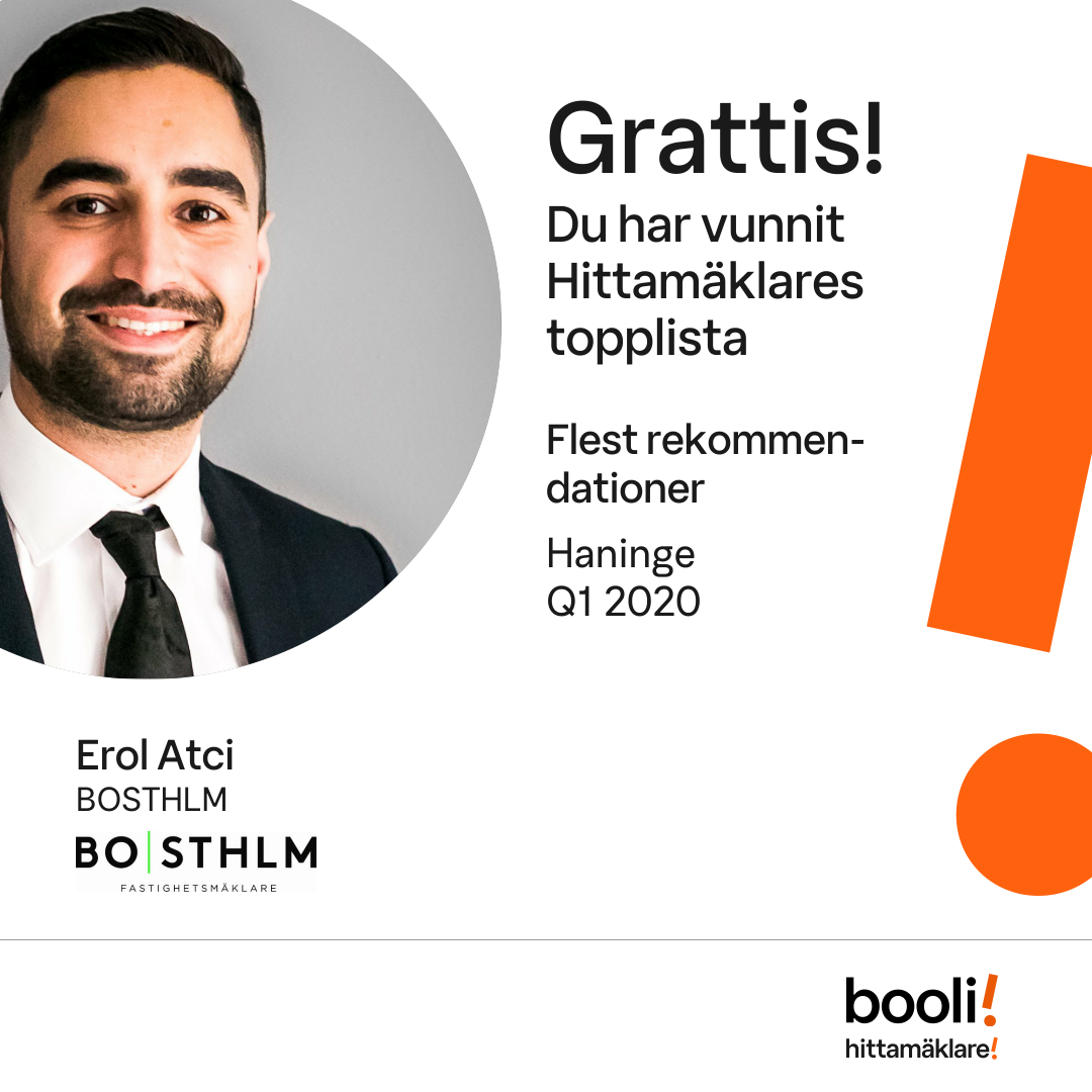 Statistik för publicerade bostäder, försäljningar och omdömen baseras på data från Booli och Hittamäklare. Statistiken för försäljningar avser inrapporterade och verifierade slutpriser från mäklare eller av Booli inhämtade och verifierade slutpriser. Statistiken för publicerade bostäder baseras på information som publicerats på Booli.se. Statistik för omdömen och rekommendationer baseras på omdömen från säljare som lämnats via Booli och Hittamäklare.