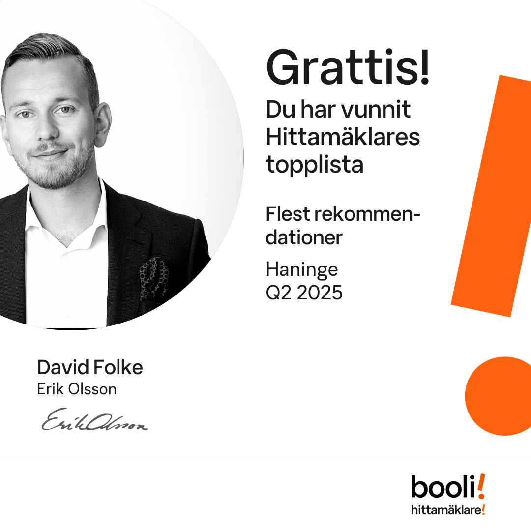 Statistik för publicerade bostäder, försäljningar och omdömen baseras på data från Booli och Hittamäklare. Statistiken för försäljningar avser inrapporterade och verifierade slutpriser från mäklare eller av Booli inhämtade och verifierade slutpriser. Statistiken för publicerade bostäder baseras på information som publicerats på Booli.se. Statistik för omdömen och rekommendationer baseras på omdömen från säljare som lämnats via Booli och Hittamäklare.