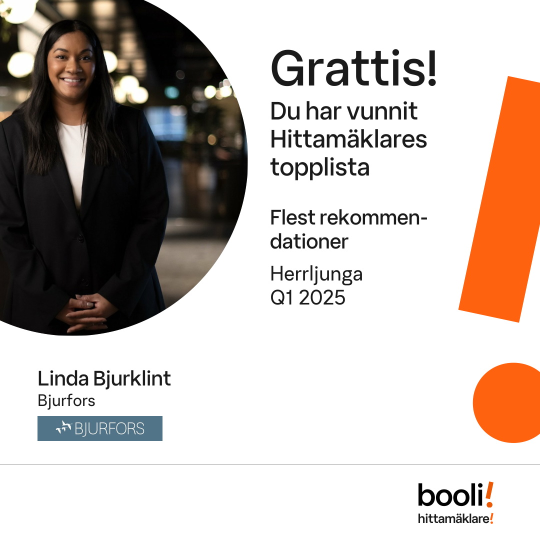 Statistik för publicerade bostäder, försäljningar och omdömen baseras på data från Booli och Hittamäklare. Statistiken för försäljningar avser inrapporterade och verifierade slutpriser från mäklare eller av Booli inhämtade och verifierade slutpriser. Statistiken för publicerade bostäder baseras på information som publicerats på Booli.se. Statistik för omdömen och rekommendationer baseras på omdömen från säljare som lämnats via Booli och Hittamäklare.