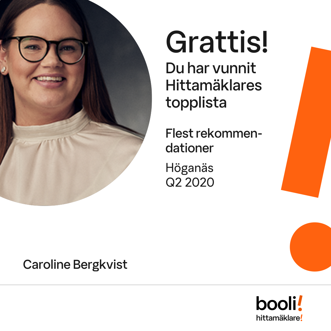 Statistik för publicerade bostäder, försäljningar och omdömen baseras på data från Booli och Hittamäklare. Statistiken för försäljningar avser inrapporterade och verifierade slutpriser från mäklare eller av Booli inhämtade och verifierade slutpriser. Statistiken för publicerade bostäder baseras på information som publicerats på Booli.se. Statistik för omdömen och rekommendationer baseras på omdömen från säljare som lämnats via Booli och Hittamäklare.