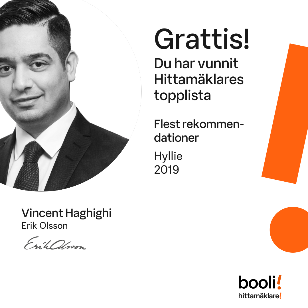 Statistik för publicerade bostäder, försäljningar och omdömen baseras på data från Booli och Hittamäklare. Statistiken för försäljningar avser inrapporterade och verifierade slutpriser från mäklare eller av Booli inhämtade och verifierade slutpriser. Statistiken för publicerade bostäder baseras på information som publicerats på Booli.se. Statistik för omdömen och rekommendationer baseras på omdömen från säljare som lämnats via Booli och Hittamäklare.