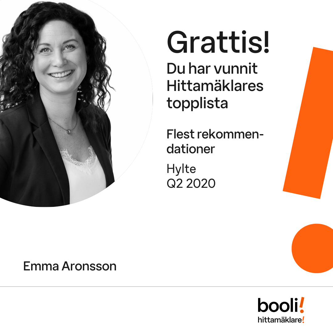 Statistik för publicerade bostäder, försäljningar och omdömen baseras på data från Booli och Hittamäklare. Statistiken för försäljningar avser inrapporterade och verifierade slutpriser från mäklare eller av Booli inhämtade och verifierade slutpriser. Statistiken för publicerade bostäder baseras på information som publicerats på Booli.se. Statistik för omdömen och rekommendationer baseras på omdömen från säljare som lämnats via Booli och Hittamäklare.