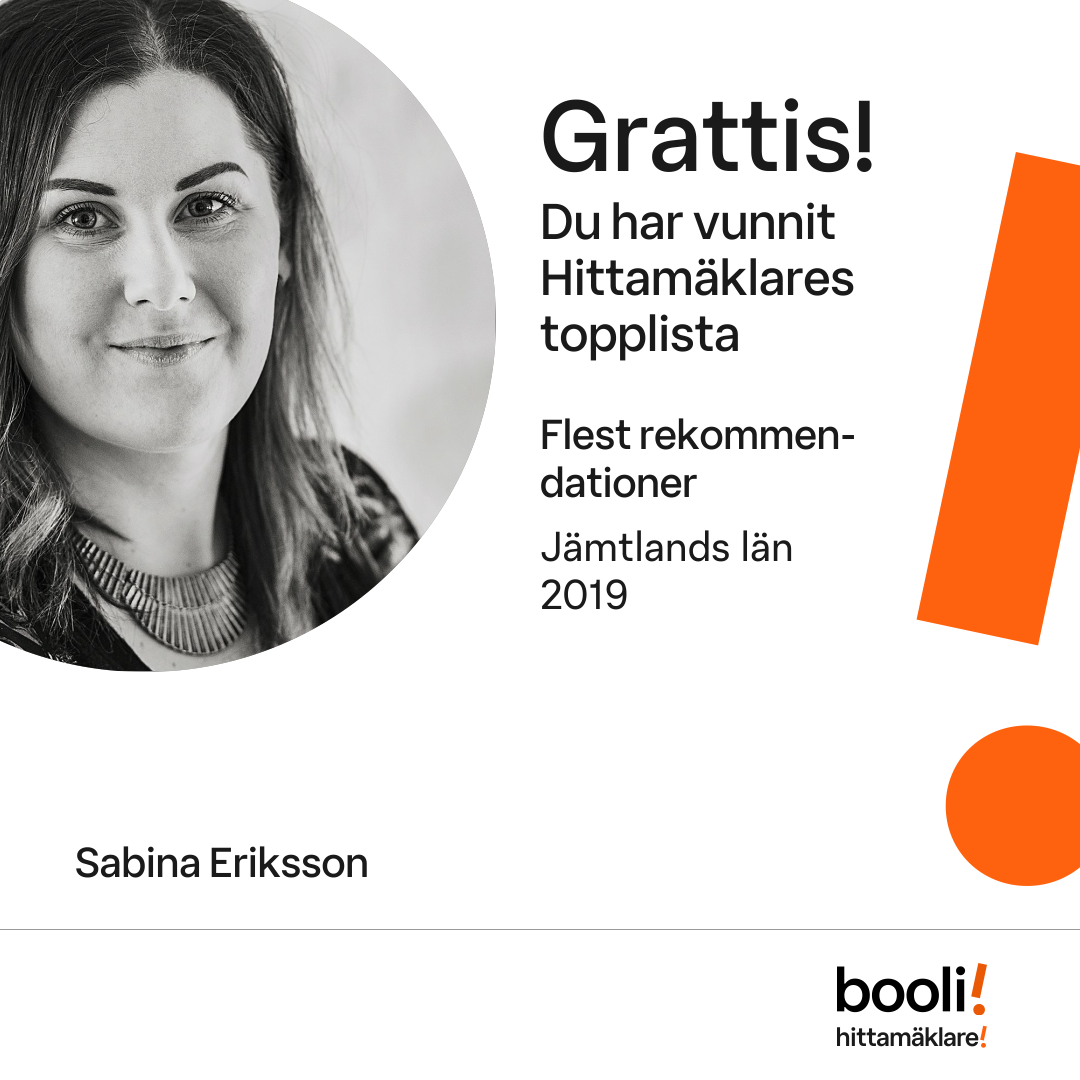 Statistik för publicerade bostäder, försäljningar och omdömen baseras på data från Booli och Hittamäklare. Statistiken för försäljningar avser inrapporterade och verifierade slutpriser från mäklare eller av Booli inhämtade och verifierade slutpriser. Statistiken för publicerade bostäder baseras på information som publicerats på Booli.se. Statistik för omdömen och rekommendationer baseras på omdömen från säljare som lämnats via Booli och Hittamäklare.