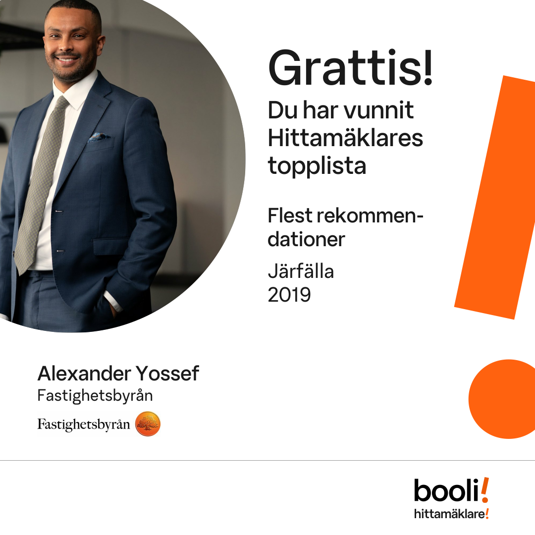 Statistik för publicerade bostäder, försäljningar och omdömen baseras på data från Booli och Hittamäklare. Statistiken för försäljningar avser inrapporterade och verifierade slutpriser från mäklare eller av Booli inhämtade och verifierade slutpriser. Statistiken för publicerade bostäder baseras på information som publicerats på Booli.se. Statistik för omdömen och rekommendationer baseras på omdömen från säljare som lämnats via Booli och Hittamäklare.