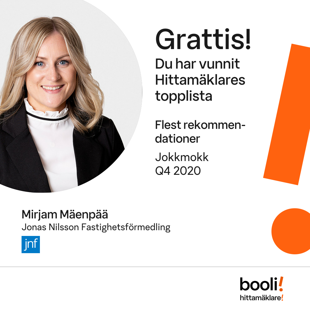 Mäklarna med flest rekommendationer i Jokkmokk fjärde kvartalet 2020 enligt vår statistik. Publicerad 2021-01-04.
