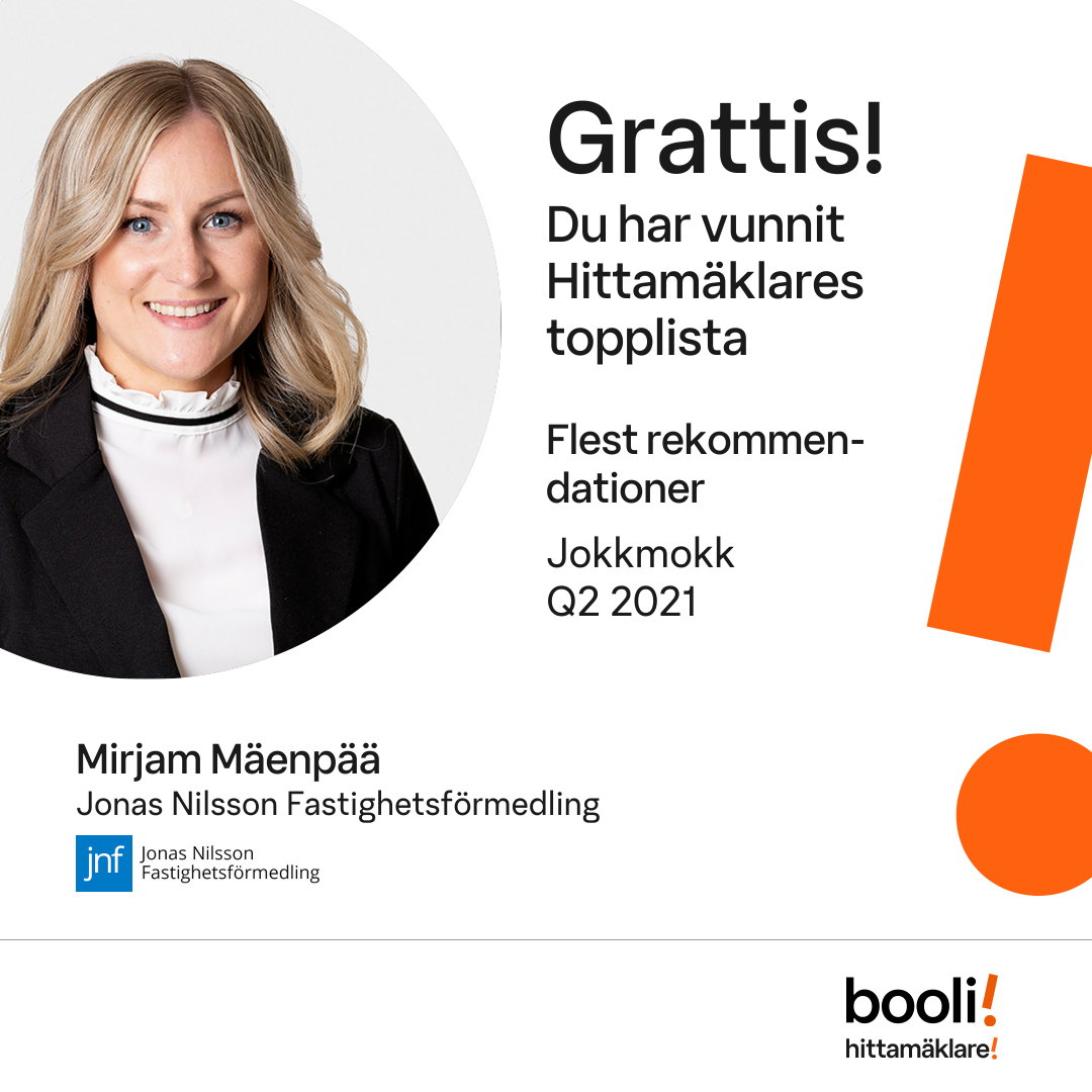 Mäklarna med flest rekommendationer i Jokkmokk andra kvartalet 2021 enligt vår statistik. Publicerad 2021-07-08.