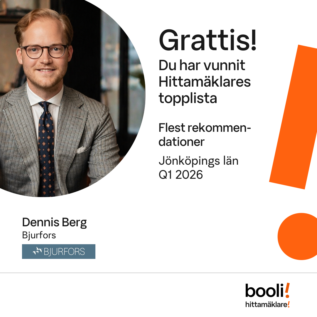 Statistik för publicerade bostäder, försäljningar och omdömen baseras på data från Booli. Statistiken för försäljningar avser inrapporterade och verifierade slutpriser från mäklare eller av Booli inhämtade och verifierade slutpriser. Statistiken för publicerade bostäder baseras på information som publicerats på Booli.se. Statistik för omdömen och rekommendationer baseras på omdömen från säljare som lämnats via Booli.