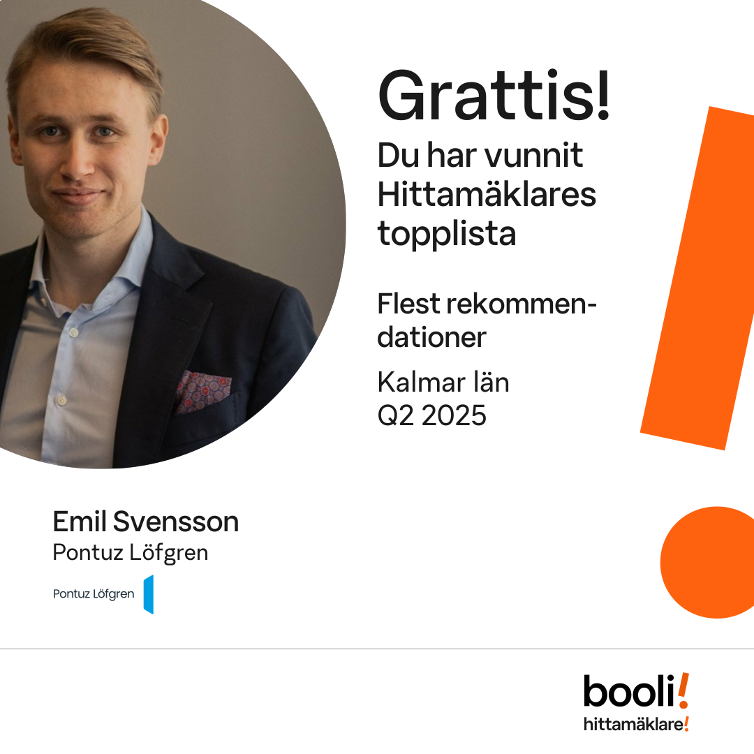 Statistik för publicerade bostäder, försäljningar och omdömen baseras på data från Booli och Hittamäklare. Statistiken för försäljningar avser inrapporterade och verifierade slutpriser från mäklare eller av Booli inhämtade och verifierade slutpriser. Statistiken för publicerade bostäder baseras på information som publicerats på Booli.se. Statistik för omdömen och rekommendationer baseras på omdömen från säljare som lämnats via Booli och Hittamäklare.